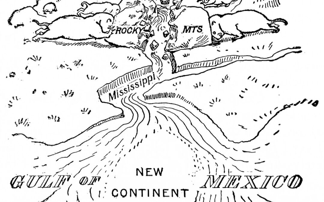 According to Ernest Thompson Seton, Pocket Gophers reshape the landscape by moving vast amounts if earth each year. The little creatures have a special task—tearing down mountains and creating new continents from the debris. The illustration above sent me burrowing back into the deepest reaches of Lives of Game Animals to find out more. (Vol IV, pg. 414-418, abridged.) Of course, the Rocky Mountains do not drain into the Gulf of Mexico via the Mississippi, but instead by way of the Rio Grande.